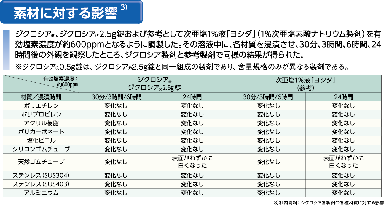 塩素臭が少ない改良型の塩素系製剤