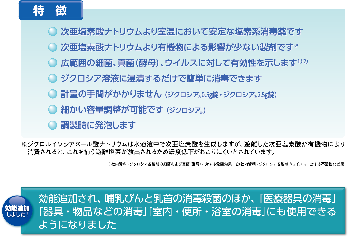 塩素臭が少ない改良型の塩素系製剤
