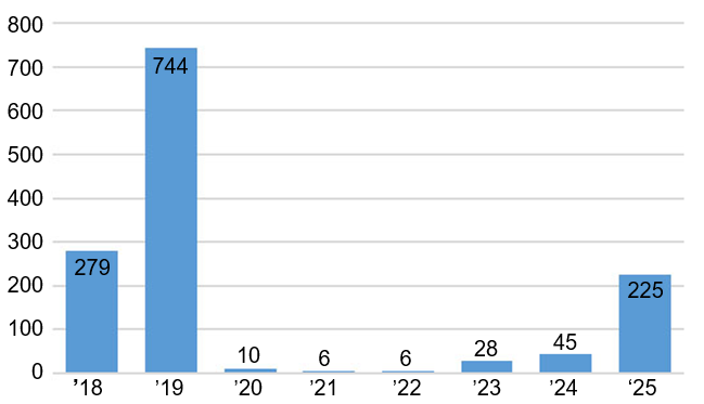 図1:国内における麻疹の発生動向(2025年9月10日までの報告件数)7)
