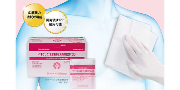 [クロルヘキシジン製剤]ヘキザックシリーズ(クロルヘキシジン製剤)使用時の手順など、現場で役立つ資材をご用意いたしました。