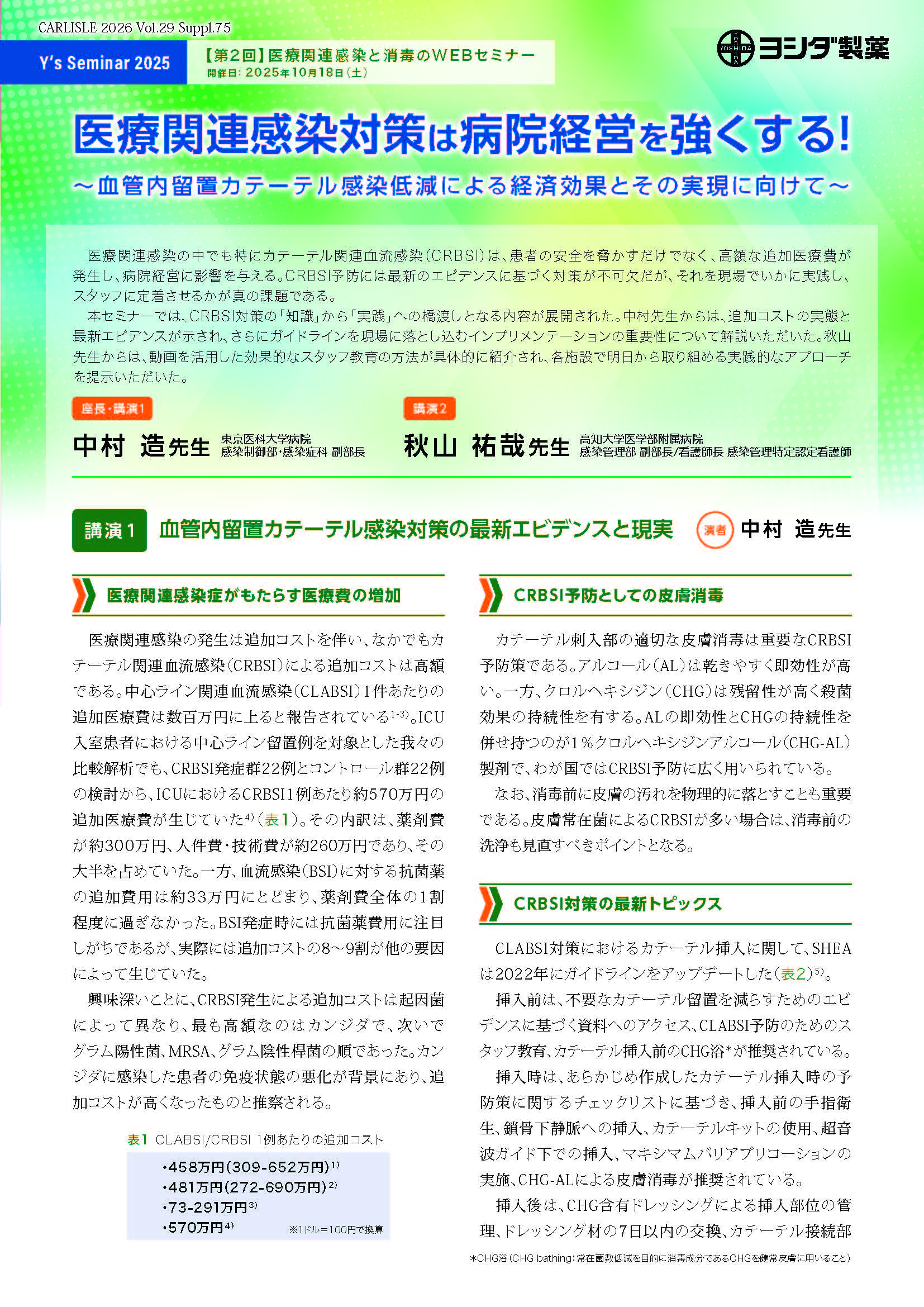 ~血管内留置カテーテル感染低減による経済効果とその実現に向けて~